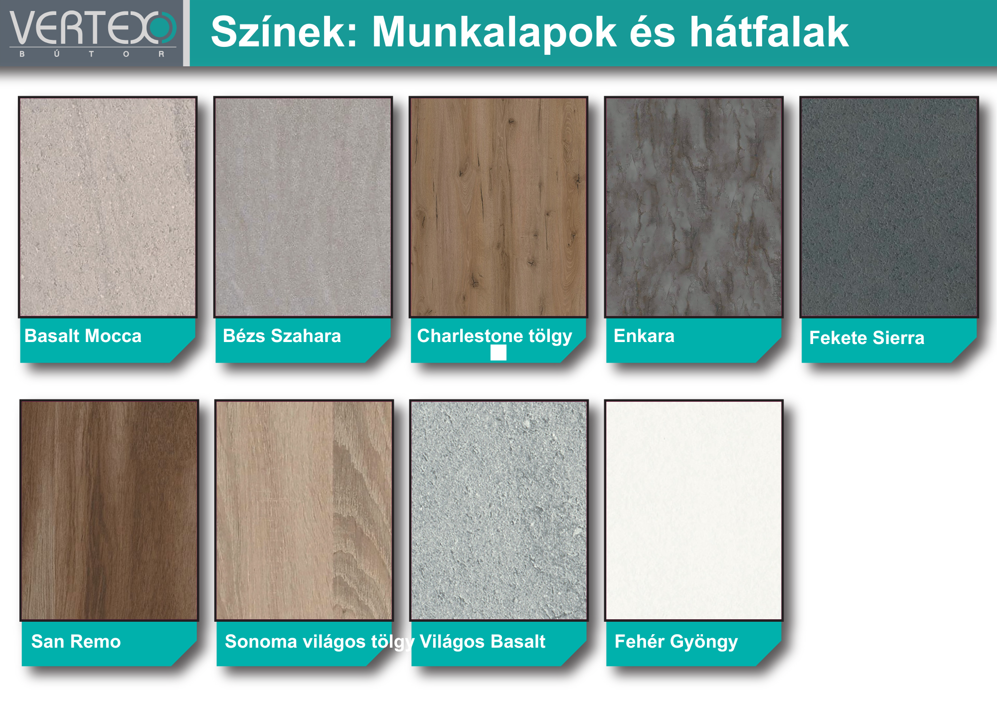 Trendi színek rengeteg kombinációs lehetőséggel 18 mm laminált bútorlapból. Elemválasztékával mindenféle variációjú konyha megvalósítható, legyen az egyes, L vagy akár U alakú kiosztás.