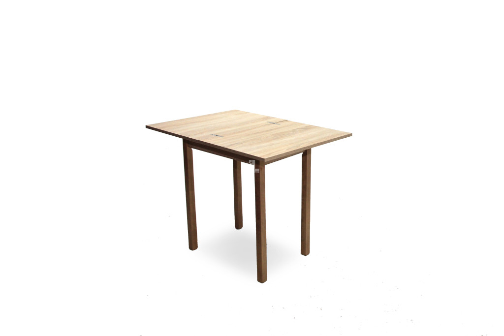Elfordítható, széthajtható lappal nagyobbítható tető, laminált faforgácslapból, 0,4-es ABS élfóliával zárva. Tömörfa, pácolt, lakozott lábakkal.