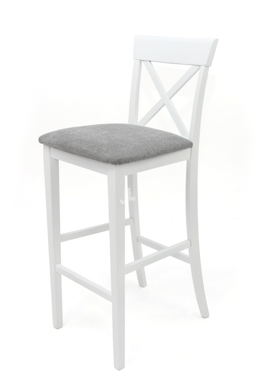 Tömörfa szerkezet festve, textil kárpitozott ülőlappal.