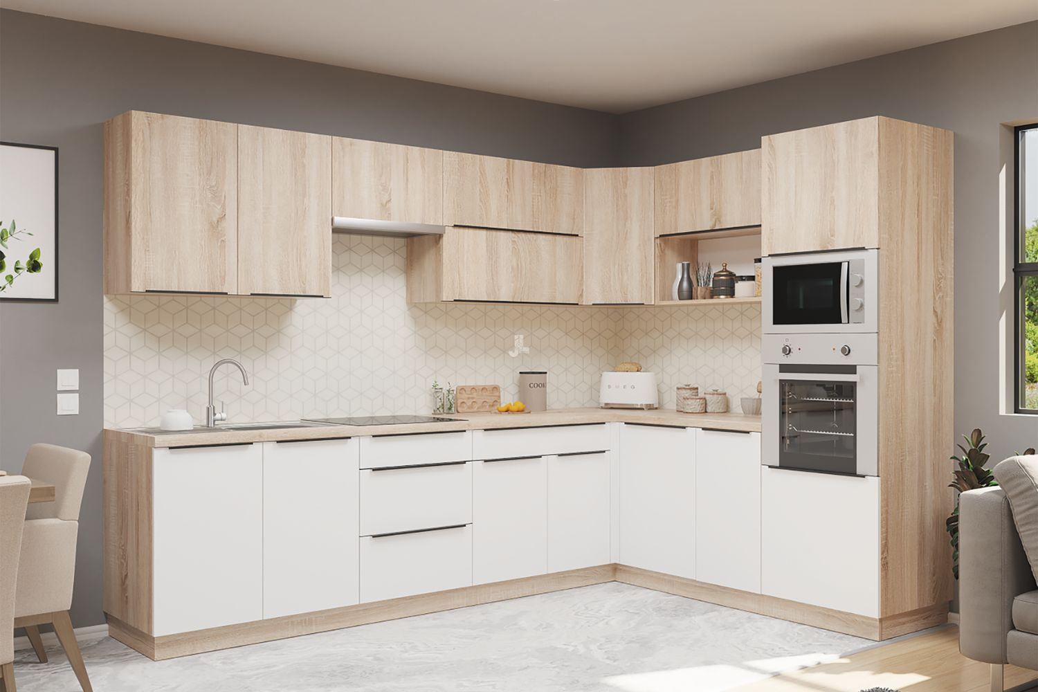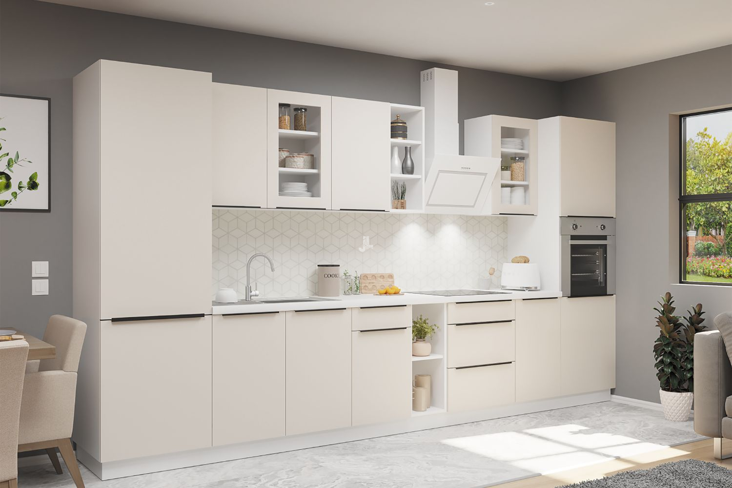 Trendi színek rengeteg kombinációs lehetőséggel 18 mm laminált bútorlapból. Fogantyúja élre ültetett. Elemválasztékával mindenféle variációjú konyha megvalósítható, legyen az egyes, L vagy akár U alakú kiosztás.